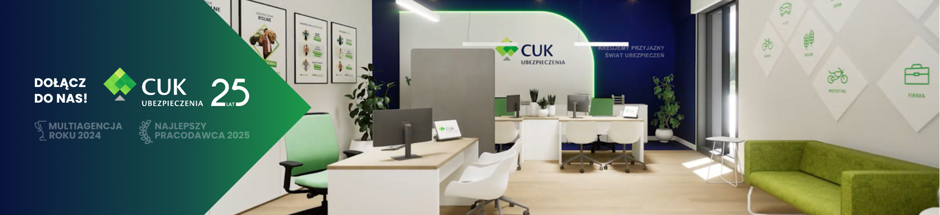 • CUK Ubezpieczenia, wiodący w Polsce dystrybutor ubezpieczeń oferujący produkty ponad 40 Towarzystw Ubezpieczeniowych, funkcjonuje od 25 lat będąc technologicznym i jakościowym liderem branży. Multiagencja działa poprzez różne kanały dotarcia do Klienta i prowadzi sprzedaż poprzez sieć 600 Placówek własnych i franczyzowych, 450 punktów partnerskich, własne Contact Center oraz kanały online. Misją firmy jest kreowanie przyjaznego dla Klienta świata ubezpieczeń. Potwierdzeniem tego są nagrody, które otrzymaliśmy, m.in.: Najlepszy Pracodawca 2025 roku, Multiagencja Roku 2024, Godło Firma Przyjazna Klientowi, Godło Najwyższa Jakość Quality International oraz Godło Jakość Roku w kategorii Usługa Roku. W naszej firmie najważniejsi są ludzie, którzy z nami pracują i wartości, jakie wnoszą. W codziennej pracy stawiamy na bezpośrednią komunikację, przyjacielskie relacje, poszukiwanie skutecznych rozwiązań oraz nabywanie nowych umiejętności.