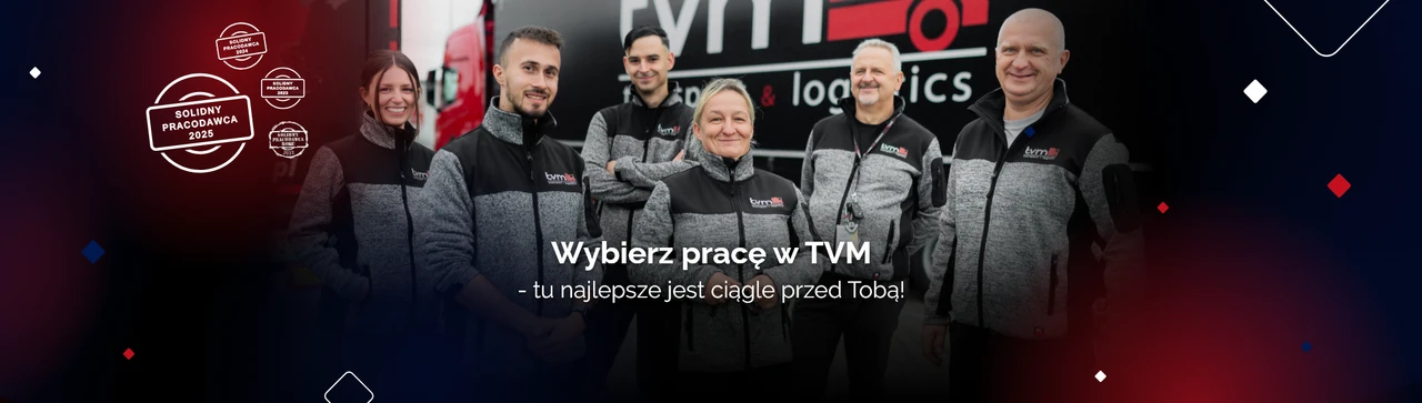 TVM Transport sp. z o.o. - jesteśmy liderem w transporcie drobnicowym. W branży TSL działamy od 2012 roku, realizując transporty w 19 krajach europejskich. Obecnie Grupa TVM to 8 spółek, 11 magazynów cross-dock, flota licząca prawie 500 samochodów ciężarowych i dostawczych oraz zespół składający się z ponad 1000 osób.